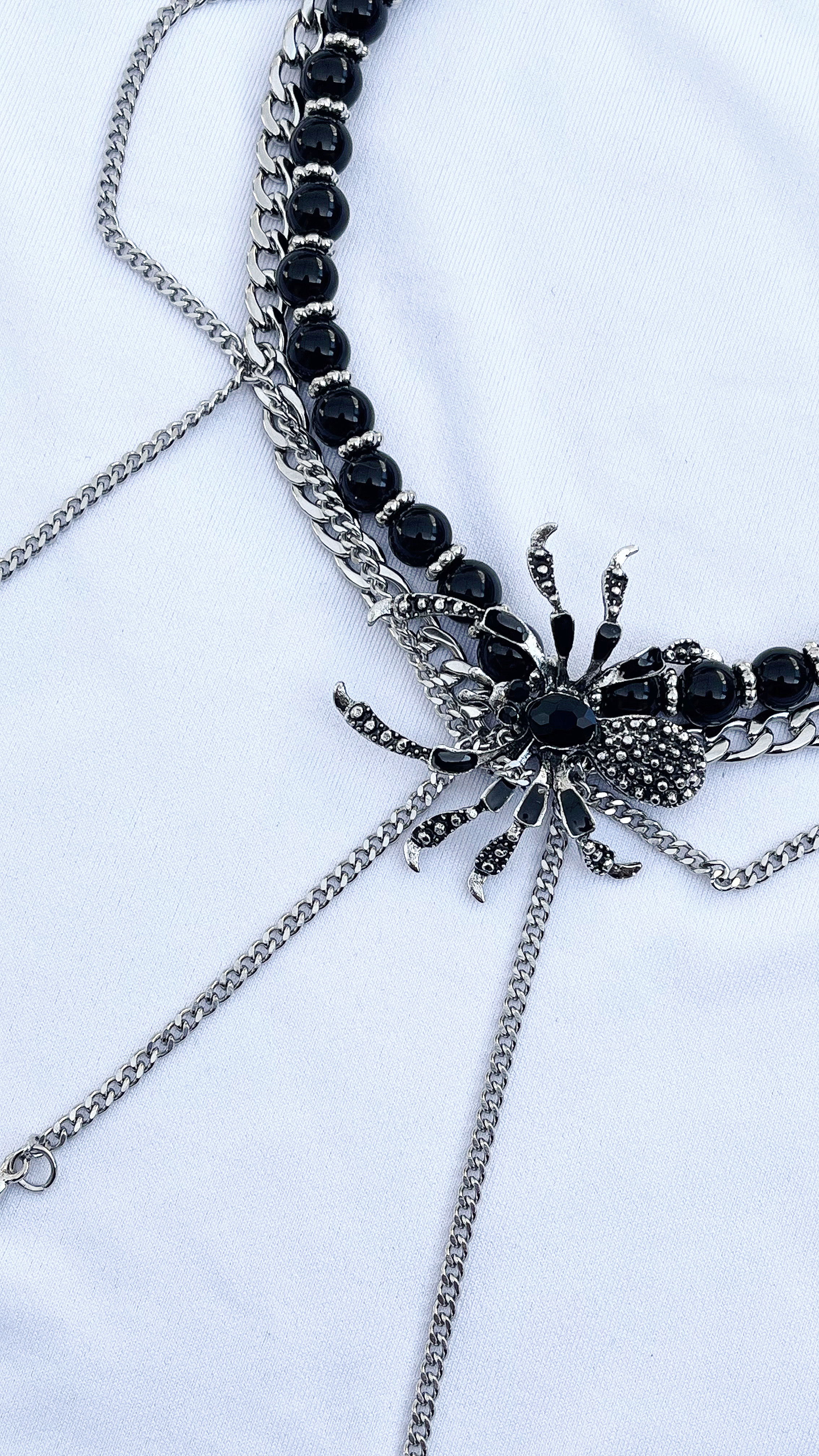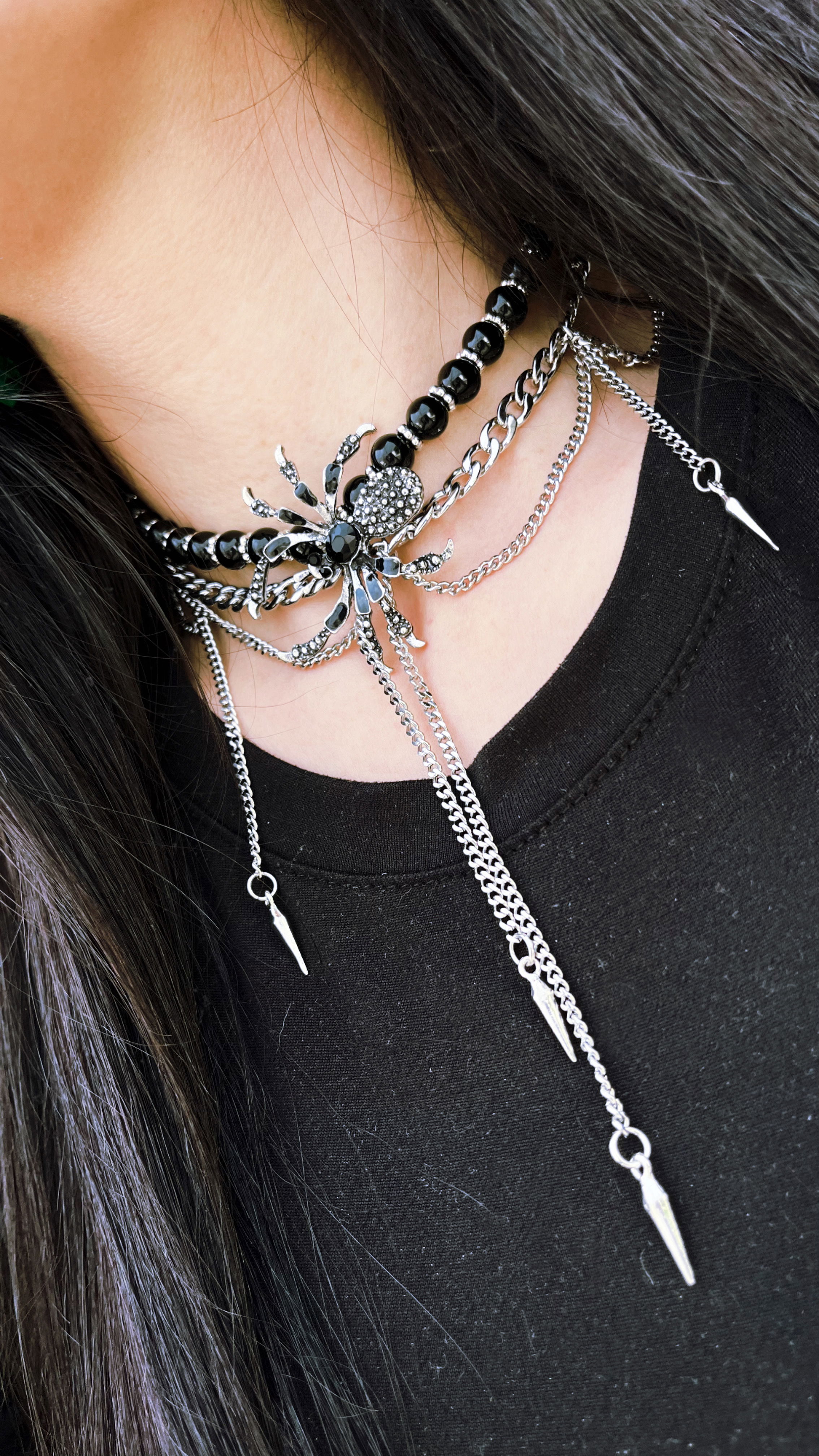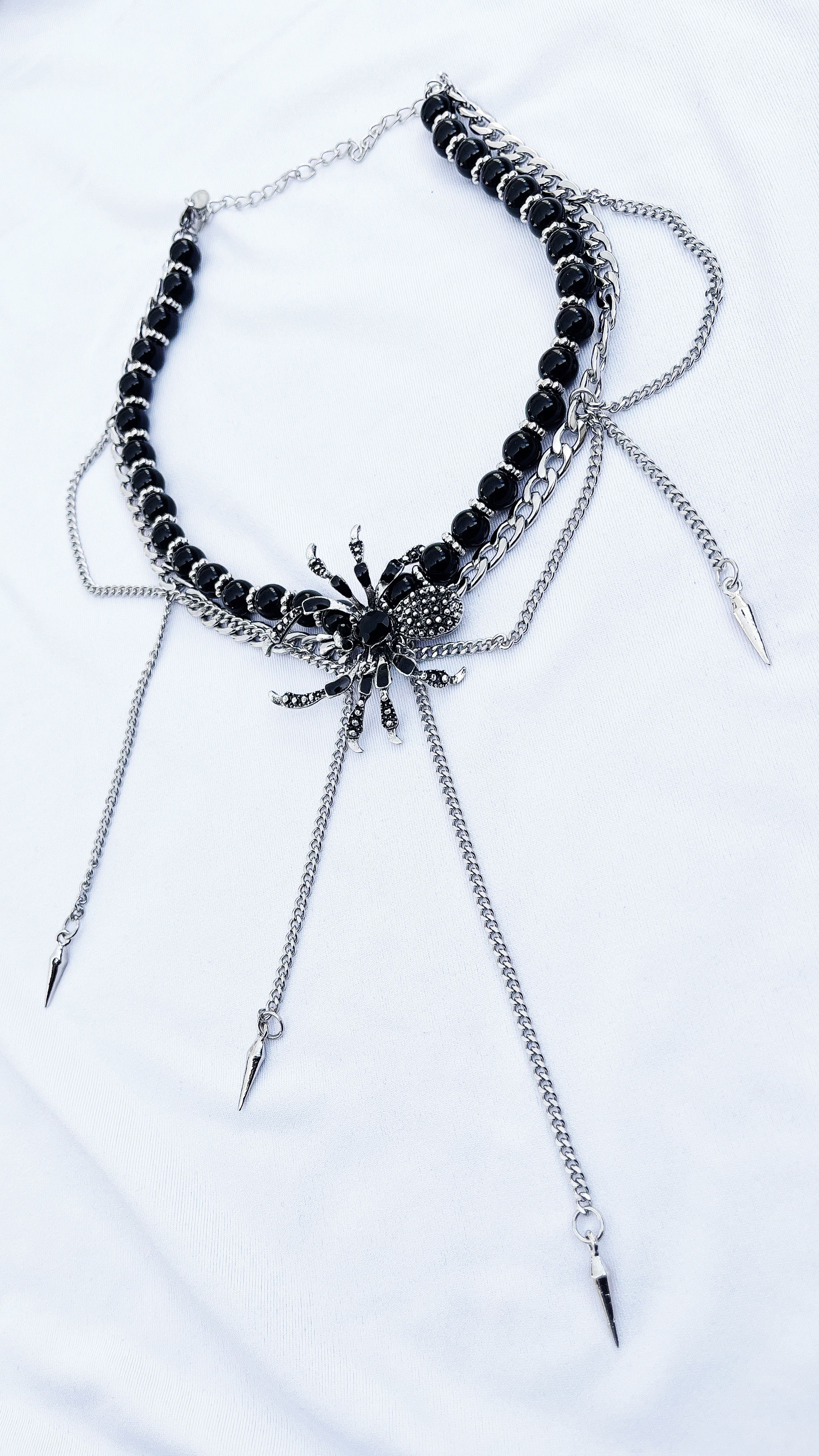 collar de cuentas con cadenas de acero quirúrgico y dijes de zamak. Regulable hasta 47 cm