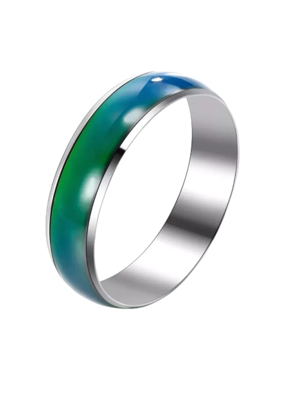 Un accesorio único que combina estilo y magia. Fabricado en acero quirúrgico hipoalergénico, resistente y brillante, este anillo cambia de color con el calor corporal, revelando tonos que van desde los fríos azules hasta cálidos verdes y violetas, según tu temperatura.