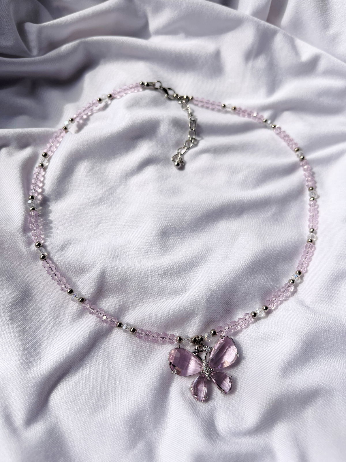 Collar Mariposa Violeta y Rosa