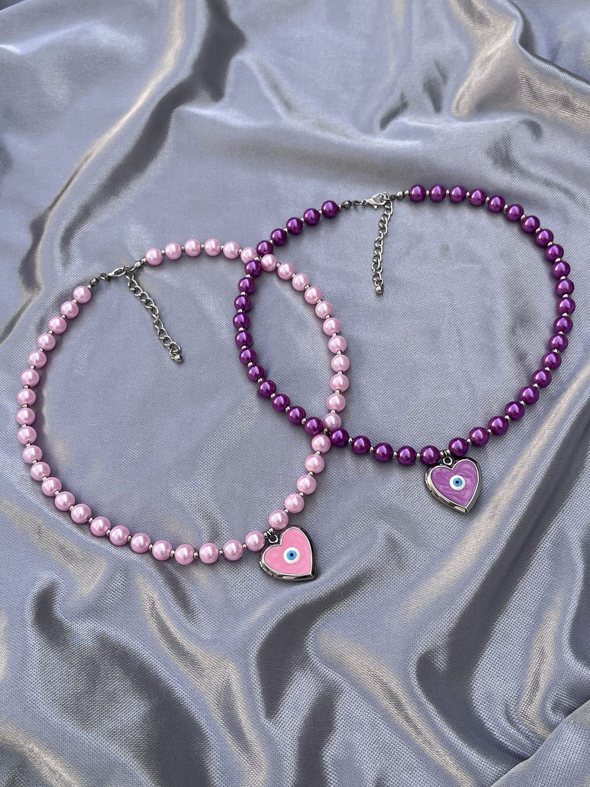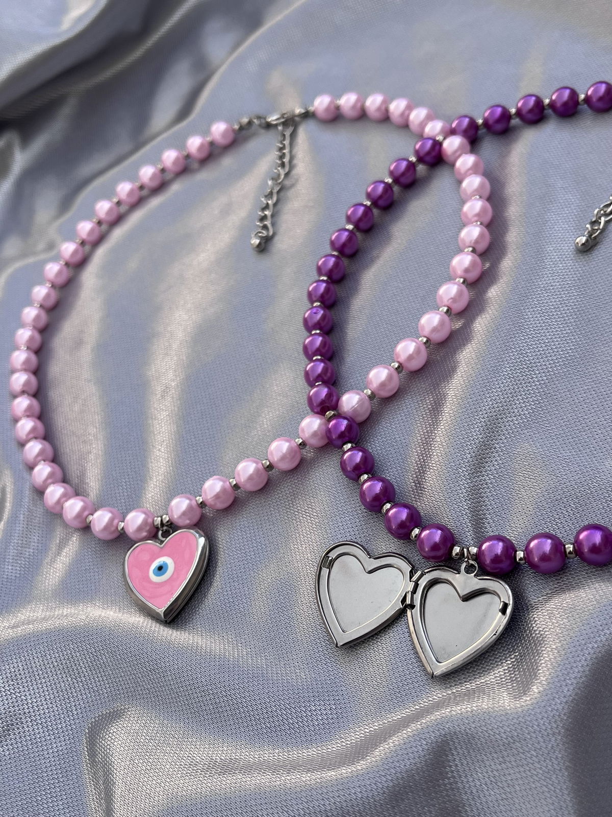 Collares relicarios con perlas de colores. Dije de acero quirúrgico
